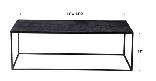 UttermostSimplistic Industrial Style Coffee Table, Constructed In An Aged Black Iron Featuring A Cast Textured Aluminum Slab Top Finished In A Plated Antiqu...