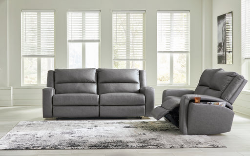 Benchcraft®Seamlessly blend contemporary aesthetics and uncompromising comfort with this reclining sofa. Its handsome charcoal-hued faux leather has a tailore...