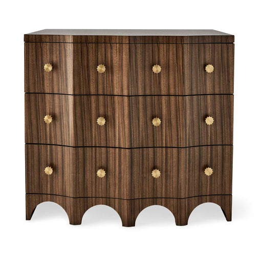 RevelationMade of highly figured Paldao wood, the bow-shaped front of Grand Flute 3 Drawer Chest has wide deep flutes. Each dove tail hardwood drawer has fou...