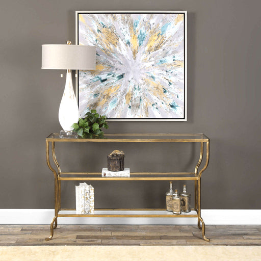 UttermostFeaturing Sophisticated Molding Details, This Elegant Console Table Has A Bright Gold Leaf Finish With Distressed Details Over A Cast Iron Framewor...