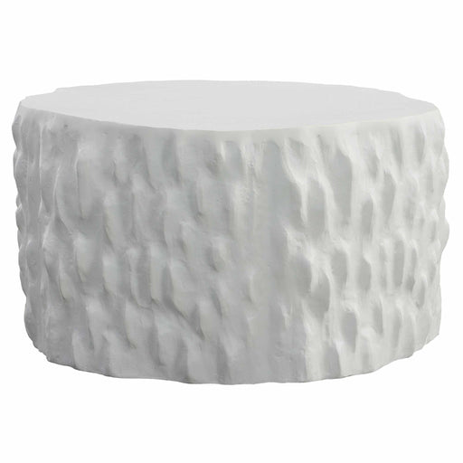 RevelationThe Snowbank Accent Table is crafted from cast aluminum and features a smooth top, with heavily textured sides, finished in matte. Powder coated fo...
