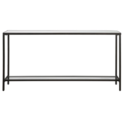 UttermostClassic And Minimalistic, This Narrow Console Table In Steel Is Finished With A Streamlined Rustic Black, Inset With A Beveled Mirrored Top, And Ga...