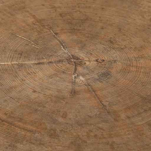 RevelationRustic meets industrial with this hand crafted accent, featuring an end grain elm veneer top on an arched tripod iron base finished in aged steel.P...