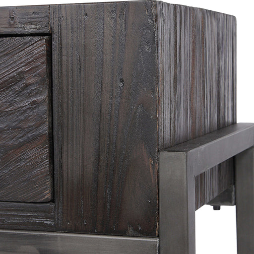 RevelationAsymmetrically styled and solidly constructed of industrial iron and fir wood in a weathered oak stain.Product Features40% Old Fir, 60% Iron Kelmen...