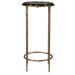 Finished in an antique gold, this textured iron accent table supports a beautiful piece of recycled glass. Sitting just above the frame's rounded edges, the variations in the recycled glass make each piece unique. Enjoy beside your favorite chair or in a