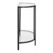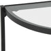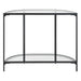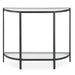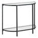 Featuring a sleek demilune frame that spans 36" wide, this iron console table blends style and function. The satin black finish exudes a contemporary elegance and the shelves are crafted with tempered glass, offering a durable surface for displaying your