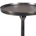 This aluminum and iron accent table, finished in a rich dark bronze, is a blend of minimalist design and refined detail. Its simple silhouette is enhanced by a round travertine insert nestled within the body, offering a touch of organic texture.
