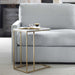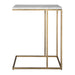 This perfectly sized accent table, with it's open design, will look great beside your favorite chair. The antique brass metal frame is topped with a beautiful piece of white Morwad honed marble. Natural gray veining is throughout, making each piece a litt