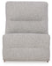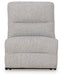 Details | Includes 5 modular pieces: left-arm facing power recliner, power armless recliner, armless chair, wedge and right-arm facing power recliner, "Left-arm" and "right-arm" describe the position of the arm when you face the piece, Versatile modular pieces fit together in a variety of configurations, One-touch power control with adjustable positions, Easy View™ adjustable headrest and zero-draw USB port; zero-draw technology only consumes power when the USB receptacle is in use, Easy View™ adjustable headrest puts your head and neck in optimum position for reading or watching TV even if you're fully reclined; zero-gravity mechanism allows optimum reclining comfort with infinite reclining positions at the touch of a button, Corner-blocked frame with metal reinforced seat; attached cushions, High-quality foam cushions wrapped in poly fiber, Accent pillows included; pillows with soft polyfill, Polyester upholstery, Next-Gen Nuvella™ is a performance fabric that is soft, easy to clean, stain-resistant and durable, Clean fabric with mild soap and water, let air dry; for stubborn stains, use a solution of 4 oz. bleach to 28 oz. water, Power cord included; UL Listed | |