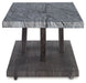 Details | Includes coffee table and 2 end tables, Made with decorative paper laminate and MDF substrate, Faux gray marble top, Weathered gray wood grain finish on legs and lower shelf, Coffee table with casters for easy mobility, Assembly required | |