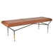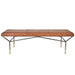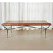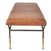 The Bridge Bench is engineered for function and beauty. Made of stainless steel with solid brass feet, and hand dyed 57-inch long leather box cushion in a warm whiskey color. Because leather is a natural product, both texture and color will vary slightly from hide to hide and within the same hide.