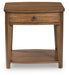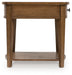 Serving up transitional style at its best, this striking end table looks equally at home in traditional and modern settings. Its classic brown finish merges effortlessly with a softly rounded top and tapered legs for a timeless, contemporary vibe. A lower shelf beautifully accommodates baskets, magazines, plants and more, while the handy drawer keeps entertainment essentials close by.