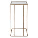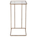 Minimally Designed With Versatility, This Petite Hand Forged Iron Accent Table Is Finished In Heavily Antiqued Gold With A Clear Tempered Glass Top.