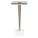 Showcasing Style And Sophistication, This Drink Table Features A Thick Crystal Top On A Tapered Stainless Steel Base Plated In Brushed Brass, Resting On A Natural White Marble Foot.