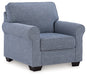 This chair is defined by comfort, convenience and classic style. Soft to the touch and stain-resistant, the Next-Gen Nuvella™ fabric is easy to maintain. And you'll love the universal appeal of its denim-inspired hue. With roll arms adding a dash of traditional flair, the chair is a simply chic approach to everyday relaxation.