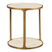 The Warm Tones Of The Clench Side Table Are The Perfect Accent To Any Modern Space. With A Rich Antique Brass Cast Aluminum Framework Accented By Beige Travertine Shelves.