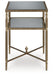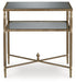 Details | Made with metal and glass, Frame with aged goldtone finish, Inset mirror top, Clear glass shelf, Round legs with bobbins and reeded embellishments, Lower stretcher with decorative center finial, Assembly required | |