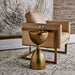 Heavily textured cast aluminum is finished in aged brass with patina accents that perfectly complement the clean coup shape. Due to the chemical reaction of the antiquing, each piece will have unique coloration.