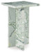 Elevate your space with exquisite natural beauty. With its sleek design and unique green veining, this marble accent table is a standout piece that effortlessly blends with contemporary decor. Perfect for placing next to your couch or bed, the functional and stylish table is ideal for holding your favorite book or a cup of coffee.