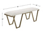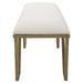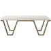 Classic And Sophisticated, This Accent Bench Features A Geometric Iron Base In Antique Gold Leaf With An Upholstered Seat In A Crisp White Textured Fabric.