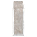 Finished In An Aged Bone-white Over Mahogany Veneer With A Multi-level Display, Featuring A Hand Carved Geometric Top In Solid Mahogany Wood In A Warm Oatmeal Wash.