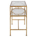 Featuring Elegant Forged Iron Decorated Sides, This Side Table Is Finished In Antique Gold Leaf With Clear Tempered Glass Top And Gallery Shelf.