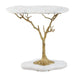 Cast brass, in a bright finish, replicates the gentle branches of a chestnut tree. Soft and organically-shaped curves of Carrara marble create the top and base of this stunning accent table. Due to the nature of marble, every piece will vary slightly ensuring yours is unique.