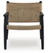 Understated style done beautifully well. This accent chair's natural jute upholstery offers a striking contrast with its black wood frame. Combining a contemporary aesthetic with a mid-century vibe, it's ideal for the living room or bedroom.