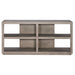 The perfect table group scaled to pair with our modular sofa, constructed of hardwood with an oak veneer in a warm mushroom gray finish. One short and one long fit perfectly around a corner sectional unit.