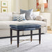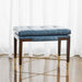 Seductive tapered legs are capped with dazzling gold finished metal feet. A removable tufted blue top grain leather seat cushion provides maximum comfort. Made of rich walnut veneer, the High Heel Bench will provide beauty and function in any room it inhabits.