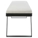 The Modern Hover Bench Is Streamlined With An Aged Black Curved Iron Base And Cushioned Seat. Upholstered In An Ivory Chenille Boucle Performance Fabric.