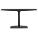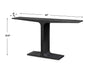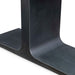 Inspired by modern cantilevered architecture, historic anvils, and "I beams", the industrial console table is finished in a blackened burnished steel.