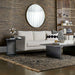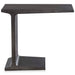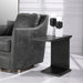 Inspired by modern cantilevered architecture, historic anvils, and "I beams", this industrial pull up table is finished in a blackened burnished steel. Designed to pull up as a side table or to create a layered look over a coffee table.