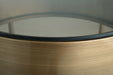Details | Includes coffee table and 2 end tables, Made with metal and glass, Aged brass-tone finish, Tempered glass tabletop with smoked finish, Tubular metal legs, Assembly required | |