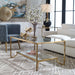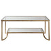 Hand Forged Iron With Lightly Antiqued Gold Leaf. Top And Gallery Shelf Are Clear, Tempered Glass.