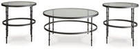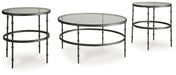 Details | Includes coffee table and 2 end tables, Made with metal, Gunmetal finish, Inset tempered glass tabletops, Assembly required | |