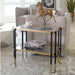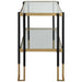 Featuring A Clean Lined Solid Iron Frame, This Contemporary Table Is Finished In A Two-toned Matte Black And Gold Leaf. Has Two Tempered Glass Shelves.