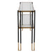 Featuring A Clean Lined Solid Iron Frame, This Contemporary Console Is Finished In A Two-toned Matte Black And Gold Leaf. Has Two Tempered Glass Shelves.