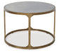 Details | Made with tubular steel frame, Durable powder coat finish with antiqued goldtone texture, Inset tempered glass top with faux marble finish | |