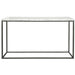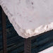 Artisan crafted with a hand chiseled natural Basra marble top, set on a simplistic iron frame finished in aged steel with an organic hammered texture.