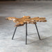 Featuring Solid Wood Construction, This Coffee Table Is Topped With A Deeply Grained Cross Section Of Natural Teak Wood With Light Honey Glazing, Paired With Aged Black Finished Iron Legs. Sizes And Grain Pattern May Vary Due To The Authentic Nature Of The Design.