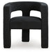 With its sculptural silhouette and barrel-back design, this accent chair exudes runway-inspired style. Peek-a-boo styling and decadent boucle upholstery combine both fashion and comfort seamlessly. Who says cutouts are just for your wardrobe?