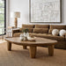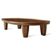 A nod to nature: The generous in scale leaf-shaped top has a solid American white oak raised and rounded gallery, surrounding flaky American white oak veneer. Reminiscent of vintage fumed oak, the medium brown stain has a matte finish allowing the fire on the wood grain to pop. The leaf-shaped top elegantly rests atop four solid oak legs.