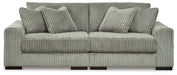 Details Includes 2 pieces: left-arm facing corner chair and right-arm facing corner chair, "Left-arm" and "right-arm" describe the position of the arm when you face the piece, Corner-blocked frame, Reversible cushions, High-resiliency foam cushions wrapped in poly fiber, Throw pillows included, Pillows with feather-fiber blend, Polyester upholstery, Exposed feet with faux wood finish, Platform foundation system resists sagging 3x better than spring system after 20,000 testing cycles by providing more even support, Smooth platform foundation maintains tight, wrinkle-free look without dips or sags that can occur over time with sinuous spring foundations
