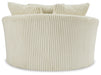 Plush and posh. Showcase your eye for on-trend texture with the statement-making cord upholstery of this oversized swivel accent chair. Its stunningly soft fabric entices in an ivory hue, complementing contemporary color palettes. Sink into the spacious cushion and plan to stay a while—this cozy living room chair highlights your high-end approach to comfort and style.