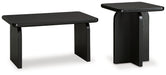 Details | Includes coffee table and end table, Made with hardwood veneer and MDF substrate, Black finish; embossed wood grain texture, Assembly required | |