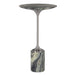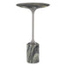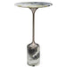 The Pirouette Accent Table is constructed from a beautiful emerald and white colored marble with streamlined brushed nickel finished metal body. True to the nature of natural materials, each piece will have unique marbling, fractures and veining throughout.