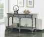 Use as a stand-alone piece along a wall or accent a sofa or loveseat with the inviting look of the Plymouth sofa table with drawers. Featuring a planked top, two drawers with ball-bearing slides and an open lower shelf, this table offers plenty of storage and display area to showcase your most treasured photos and décor. A weathered graywash finish is enhanced by the medium brown table top, while spool-turned legs and gunmetal pulls add cottage-inspired warmth and character.