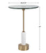 Elegant And Sophisticated, This Round Accent Table Features A Brushed Brass Iron Base With White Marble Details And A Glass Top.