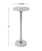 Crafted Almost Entirely From Crystal, This Drink Table Adds An Elegant Touch To Any Space. The Tapered Post Is Accented With Iron Details Finished In Brushed Nickel.